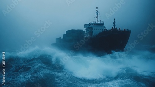 ship, ocean, storm, wave, cargo, sea, weather, dramatic, vessel, nautical, shipping, maritime, transportation, freight, danger, turbulence, water, wind, heavy, gale, tempest, fog, mist, sky, dark, blue, rough, crisis, challenge, power, nature, force, movement, travel, adventure, risk, industry, commercial, logistic, global, trade, emergency, survival, peril, resilience