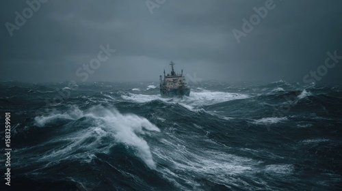 cargo, ship, stormy, sea, oceanic, water, wave, vessel, maritime, dramatic, weather, turbulent, nautical, seascape, horizon, rough, transport, marin, dark, cloudy, sea foam, wind, navigation, freight, industry, journey, travel, harsh, aquatic, nature, boat, adventure, element, threatening, risk, seafaring, wild, high seas, moody
