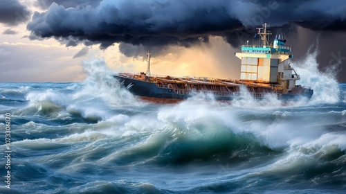cargo ship, storm, ocean, wave, ship, vessel, maritime, nautical, seafaring, tempest, gale, hurricane, typhoon, weather, climate, nature, power, force, danger, risk, adventure, survival, engineering, design, transportation, logistic, shipping, photo, image, picture