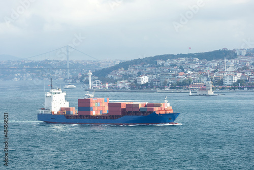 Cargo ship in Bosphorus, Istanbul, Turkey.