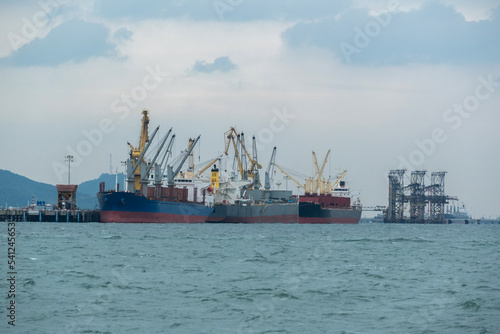 Cargo ship in Gulf of Thailand, is a shallow inlet in the southwestern South China Sea, bounded between the southwestern shores of the Indochinese