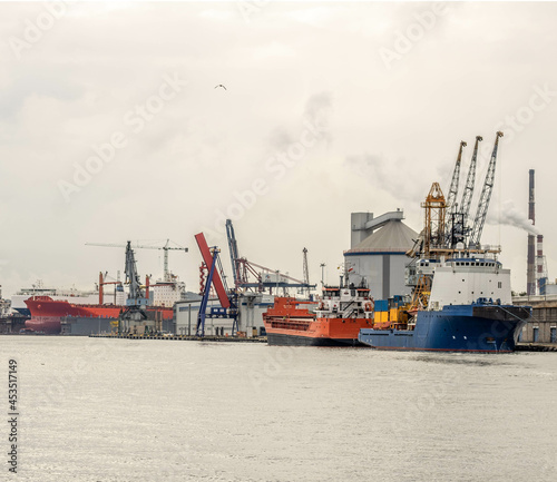 port, ship, cargo, crane, harbor, sea, industry, dock, water, container, transportation, boat, shipping, loading, industrial, transport, vessel, freight, crane, harbor, business, trade, river, unloading, sky, shipyard, poland, europa
