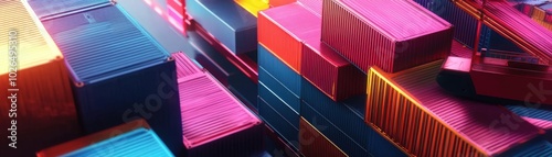 Cargo ship with vibrant containers, sleek design, dynamic energy.