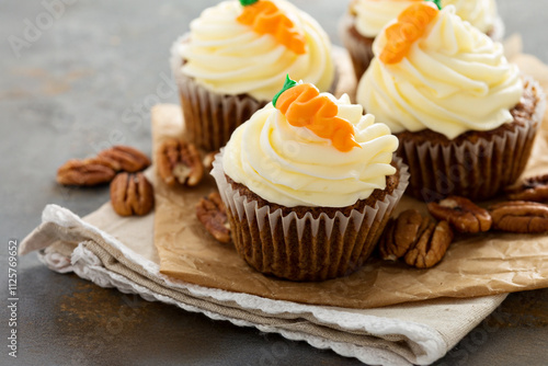 carrot, cake, cupcake, cream, cheese, frosting, decoration, dessert, food, sweet, delicious, easter, cup, bakery, muffin, pastry, homemade, vegetable, icing, epicure, orange, snack, table, white, festive, party, brown, home, tasty, closeup, decor, sugar, baked, fresh, healthy, background, holiday, nobody, paper, treat, celebration, traditional, butter, candy, event, fondant, occasion, decorated
