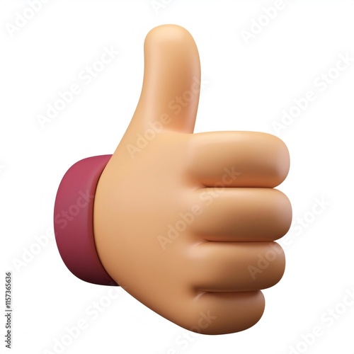 Cartoon 3D hand giving thumbs up gesture, radiating positivity against white background, expressing friendly encouragement