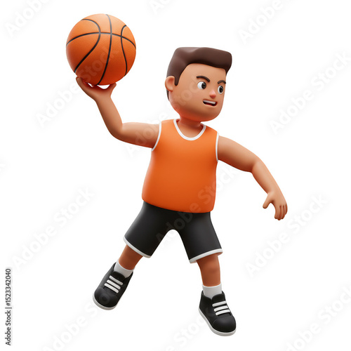 isolated, basketball, player, cartoon, character, sport, young, boy, orange, black, white, illustration, three-dimensional, render, action, game, ball, athlete, youth, active, fun, play, training, exercise, fitness, healthy, lifestyle, mascot, transparent, background, design, element, graphic, clip art, digital, art, style, pose, jumping, sport, person, male, man, youthful, activity, competitive, strength, energy, dynamic