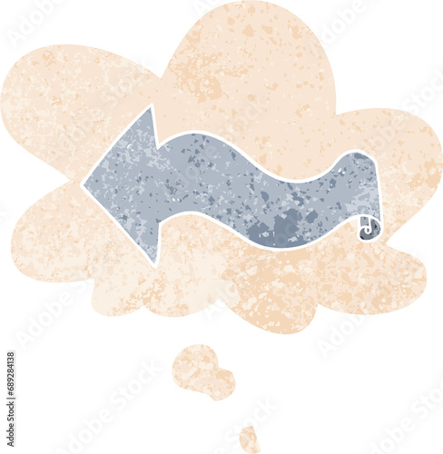 cartoon arrow with thought bubble in grunge distressed retro textured style