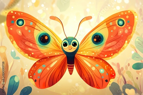 butterfly, cartoon, whimsical, exaggerated, cute, insect, nature, art, illustration, graphic, design, vector, animal, funny, happy, smiling, wing, colours, bright, colourful, pattern, floral, garden, spring, summer, childish, playful, joyful, imaginative, fantasy, fun, character, mascot, symbol, decorative, decor, wallpaper, background, digital, creative, artistic, graphic design