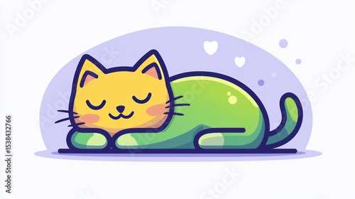 Cartoon cat sleeping, cute, relaxed, home interior, for children's book, or social media, use