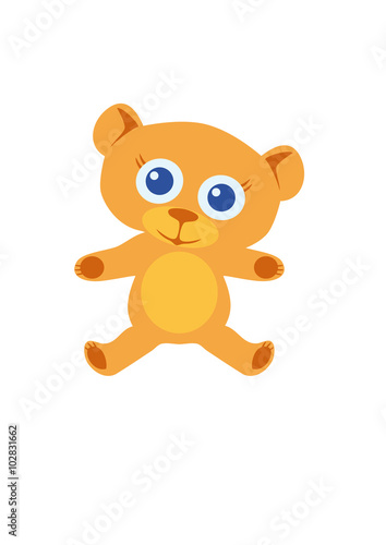 Cartoon Character Bear. Cute teddy bear toy. Toy to cuddle. Soft teddy bear with big eyes. Soft orange fur to cuddle. Cute smile and gentle arms. Stuffed toy.
