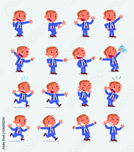 Cartoon character businessman in smart casual style. Set with different postures, attitudes and poses, doing different activities in isolated vector illustrations