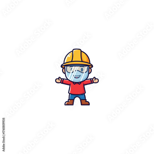 construction, men at work, safety, cartoon, helmet, hard hat, protective, illustration, character, builder, engineer, profession, job, occupation, uniform, clothing, outfit, equipment, tool, gesture, arms outstretched, standing, isolated, design, graphic, vector, style, icon, flat, symbol, image, drawing, art, element, signs, concept, creative, cheerful, happy