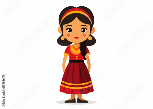 Cartoon Character of a Young Woman in Traditional Mexican Attire – Colorful Cultural Illustration
