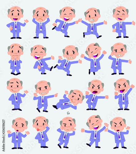 Cartoon character old businessman. Set with different postures, attitudes and poses, doing different activities in isolated vector illustrations.