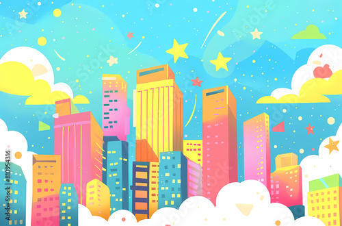 cartoon, city, building, illustration, background
