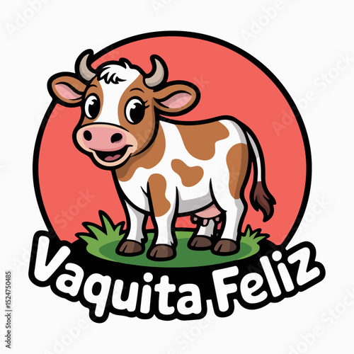Cartoon Cow in Circle Logo Vector Design for Branding or Packaging