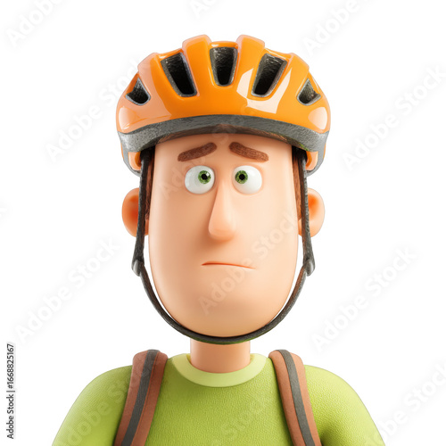 bicyclist, helmet, cartoon, three-dimensional, glossy, pastel, character, expression, sport, fun, animation, design, playful, illustration, creativity, high-coloured, vibrant, cheerful, unique, face, head shot, art, modern, graphic, style, fashion, lifestyle, hobby, adventure, sport, young, male, smile, feature, friendly, creative, colourful, digital artwork, stylised, humorous, animated, personality, whimsical