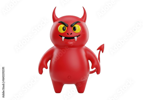 Cartoon Devil Character with Angry Expression A 3D Rendering of a Mischievous Red Demon with Horns and Tail Perfect for Halloween or Fantasy Themes