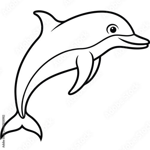 dolphin, cartoon, illustration, line art, black-and-white, monochrome, outline, drawing, vignetting, clip art, vector, graphic, design element, animal, marine animal, marine animal, mammal, wildlife, nature, water, sea, ocean, cute, happy, smiling, jumping, swimming, playful, friendly, childish, children, children, children, baby, toddler, book, colouring, page, activity, educational, simple, icon, symbol, logotype, isolated, white background