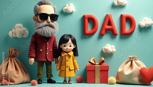 decorative, happy, day, present, bright, professional, attractive, red, love, brown, stunning, human relationships, children, design, beautiful, yellow, spectacular, character, cute, elegant, illustration, three-dimensional, vibrant, together, modern, lovely, gift, gorgeous, fantastic, father, magnificent, holding, celebration, cartoon, colourful, standing, people, family, amazing, creative, father, marvellously, daughter, stylish, impressive, rendering, charming
