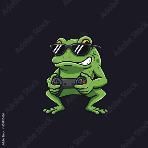 frog, cartoon, sunglasses, game, controller, video, gaming, character, green, animal, play, fun, entertainment, digital, design, illustration, graphic, cute, amphibian, electronic, media, gamer, cool, happy, relaxed, modern, style, digital artwork, amusement, leisure, technology