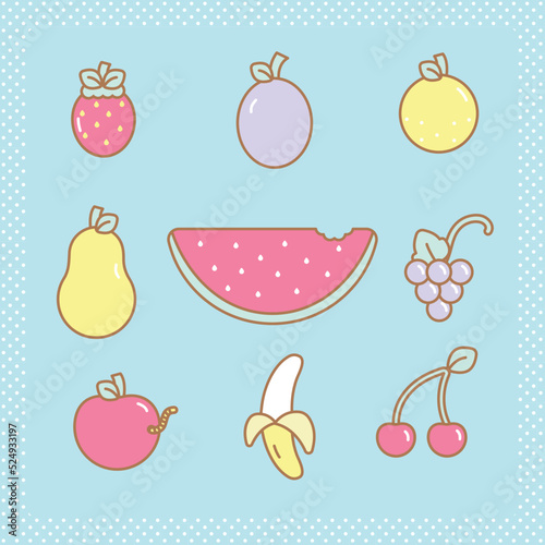 vector, illustration, design, set, icon, symbol, collection, drawing, cartoon, food, fruit, apple, pear, watermelon, cherry, grape, strawberry, isolated, lemon, banana