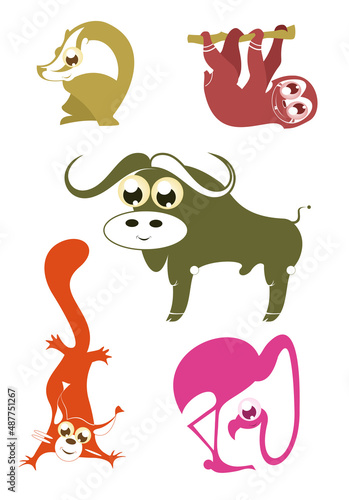animal, cartoon, funny, silhouette, badger, buffalo, bull, flamingo, squirrel, sloth, bird, logotype, original, picture, art, wildlife, signs, illustration, image, colours, isolated, biology, background, zoo, classic, design, nature, ornament, drawing, element, forest, national park, hunting, mammal, predator, africa, australia, childhood