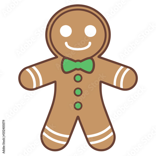 gingerbread, cookie, man, cartoon, character, illustration, brown, festive, holiday, design, icon, flat, minimal, sweet, simple, green, bow tie, buttons, treat, decoration, christmas, christmas, cute, friendly, smiling, winter, baking, dessert, fun, gift, traditional, delicious, childhood