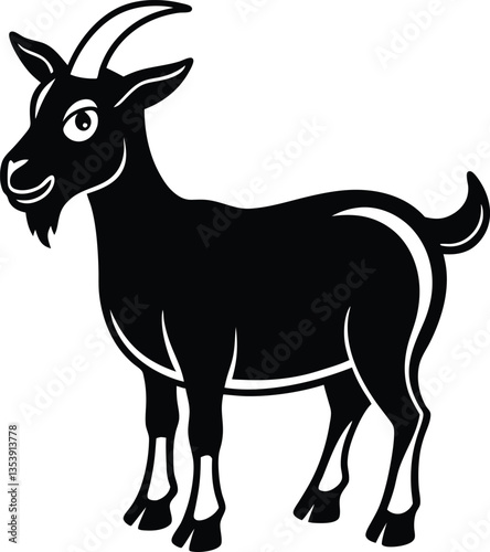 Cartoon Goat Silhouette, Farm Animal, Smiling Face, Horns, Farmhouse, Domesticated