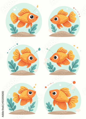 Cartoon Goldfish in Aquariums Patterned Wallpaper