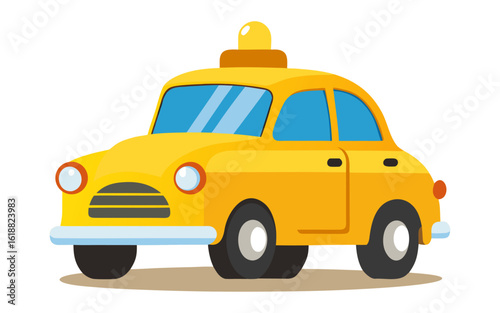 Cartoon Illustration of a Classic Yellow Taxi Cab in Vector Style – Retro Urban Transportation Clipart for Posters, Stickers, T-Shirts, and Digital Artwork