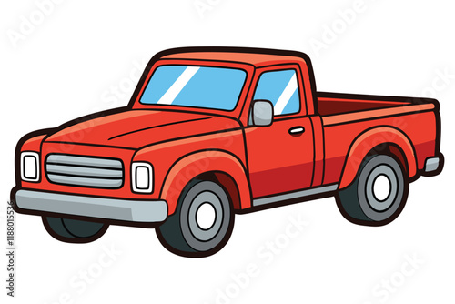 Cartoon illustration of a red pickup truck isolated on white background, showcasing a classic vehicle design with a vibrant red color scheme