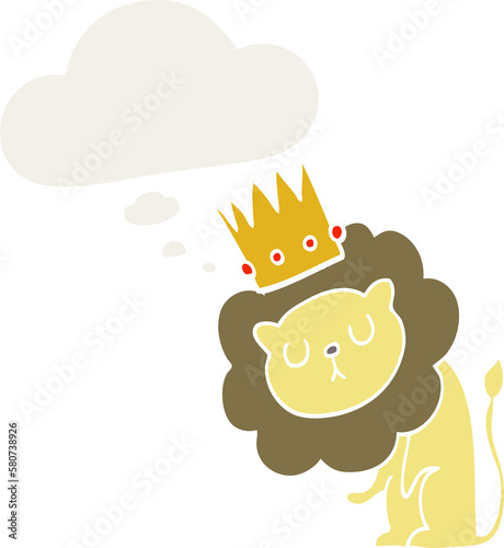 lion, crown, animal, king, zoo, cute, cartoon, retro, flat, colours, thought, bubble, balloon, thinking, drawing, illustration, doodle, freehand, free, hand, drawn, quirky, art, artwork, funny, character