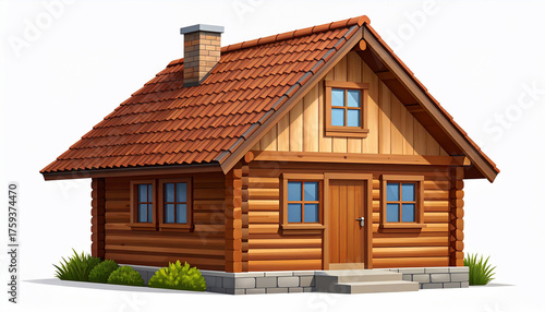 cabin, log, house, home, cartoon, illustration, rustic, wooden, architecture, building, exterior, design, roof, tile, chimney, brick, window, door, step, stone, bush, green, nature, cosy, country, style, isolated, white, background, residential, property, real, estate, rural, bungalow, filed, shelter, dwelling, facades, structure, construction, timber, residence, outdoors, drawing