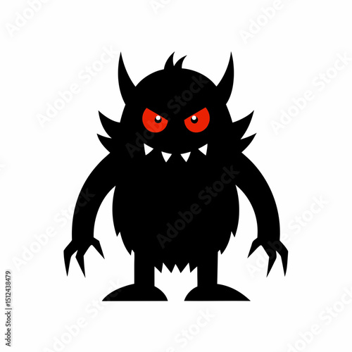 monster, cartoon, illustration, vector, character, creature, devil, daemon, halloween, scarey, cute, funny, evil, black, red, eye, horn, teeth, isolated, clip art, design, graphic, art, icon, symbol, mascot, fantasy, skittish, nightmare, fear, comic, drawing, artwork, flat, simple, minimalist, silhouette, beast, ogre, goblin, troll