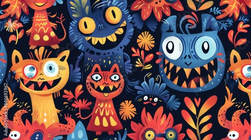 Cartoon monsters are designed in a seamless pattern perfect for wrapping paper fabrics linens kids clothing prints festive accessories and summer packaging