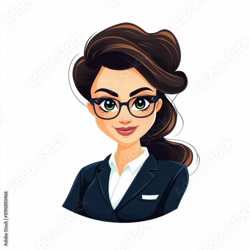 cartoon, businesswoman, character, suit, professional, avatar, stylish, goggles, brown, hair, formal, corporate, confident, elegant, smiling, creative, modern, design, sleek, animated, portrait, illustration, trendy, minimalist, profile, clean, cheerful, smart, innovative, artistic, face, unique, charming, sophisticated, polished, digital, personality, feminine, bright, charismatic, detailed, dynamic, ai, vibrant, friendly