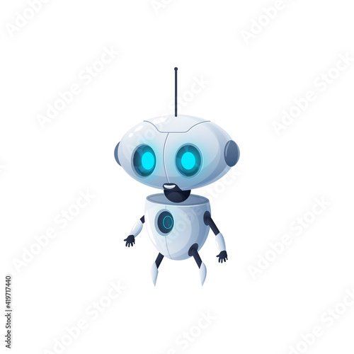 Cartoon robot with antenna on head isolated plastic hi-tech character. Vector modern stylish robotic cyborg, android robot mechanical sci fi futuristic kids toy, humanoid robotic automation