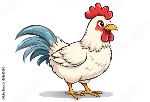 Cartoon Rooster with Blue Tail Feathers