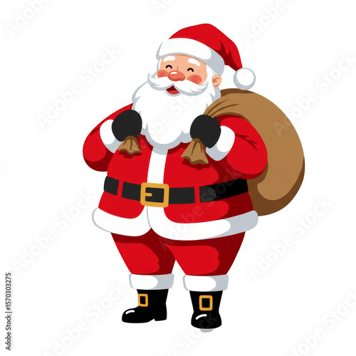 Cartoon Santa Claus Illustration with Sack in Red Outfit Isolated