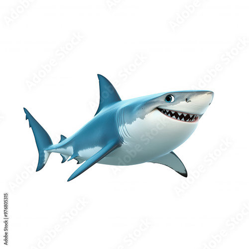 Cartoon Shark Swimming Towards Left Side with Friendly Smile.
