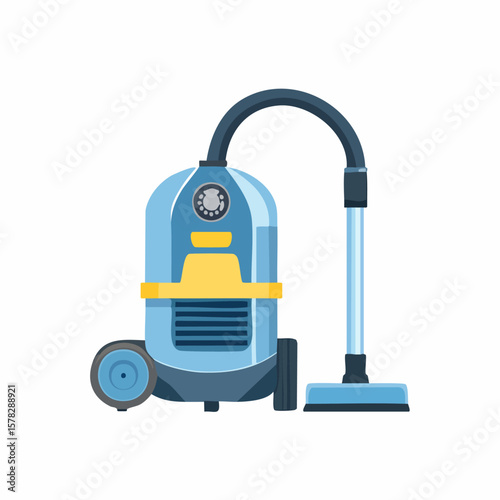 vacuum, cleaner, cleaning, appliance, household, dust, dirt, floor, home, housework, equipment, machine, technology, electric, domestic, hygiene, sanitation, tidy, sweep, suction, power, maintenance, chore, lifestyle, interior, design, illustration, cartoon, graphic, object, isolated, modern, style, colourful, blue, yellow, wheel, hose, nozzle, handle, upright, device, domesticity, service, clean, spotless, fresh, neat, simple