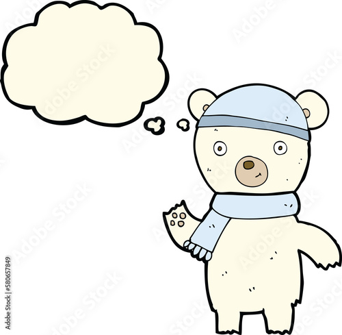 cartoon waving polar bear with thought bubble