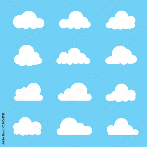 illustration, blue, vector, weather, cloud, sky, cloudscape, shape, nature, symbol, design, background, abstract, cartoon, art, heaven, collection, environment, summer, climate, white, atmosphere, day, white color, simplicity, cumulus, horizontal, cute, computer graphic, decoration, clip art, set, icon, graphic, air, bubble, fluffy, element, isolated, signs, overcast, flat, forecast, bright, space, meteorology, web