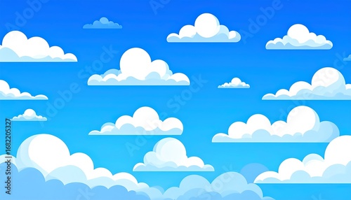 Cartoonish clouds in a vibrant blue sky. A cheerful, simple graphic
