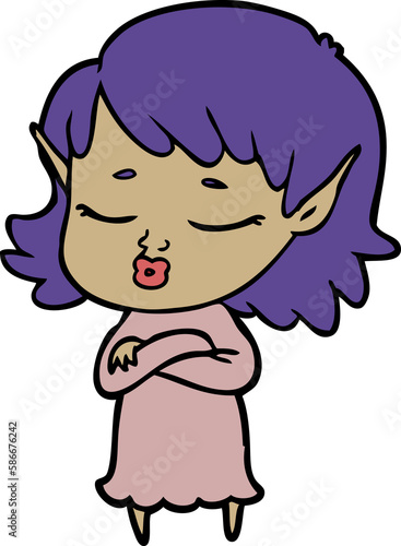 elf, woman, female, girl, cartoon, drawing, illustration, retro, doodle, freehand, free, hand, drawn, quirky, art, artwork, funny, character, fantasy, magic, crossed, folded, arm