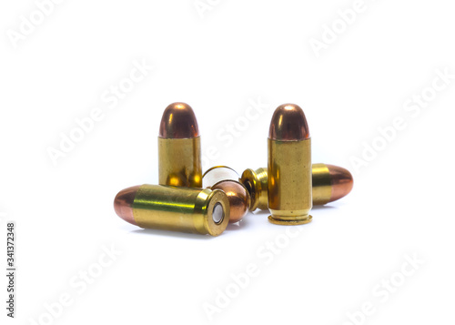 cartridges of .45 ACP pistols ammo isolated