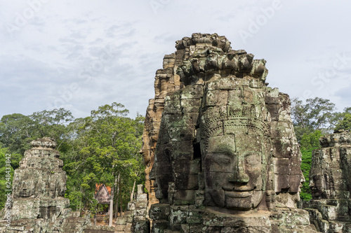 ruin, religious, face, carved, stone, sculpture, tree, jungle, rainforest, temple, 2, tour tourism, khmer, landmark, famous, earth, heritage, site, unesco, siem reap, statue, worship, god, buddhist, buddhism, hindu, hinduism, cambodian, cambodia, travel, postcard, background, sky, blue, green, bas-relief, indochina, asia, asian, religion, angkor, thom, civilisation, building, construction, massive, cloud