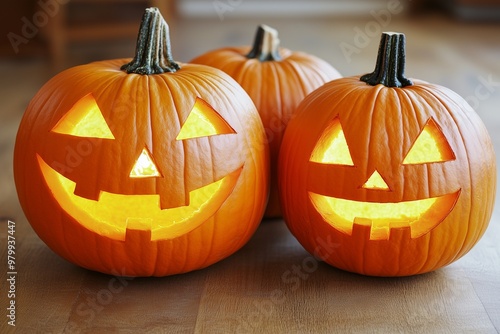 Carved Jack-O'-Lanterns with Glowing Faces