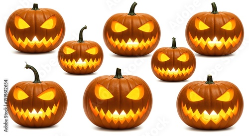 pumpkin, carved, jack, lantern, glowing, face, orange, white, background, skittish, festive, halloween, decoration, holiday, scarey, smiling, light, arrangement, autumn, seasonal, celebration, design, craft, tradition, harvest